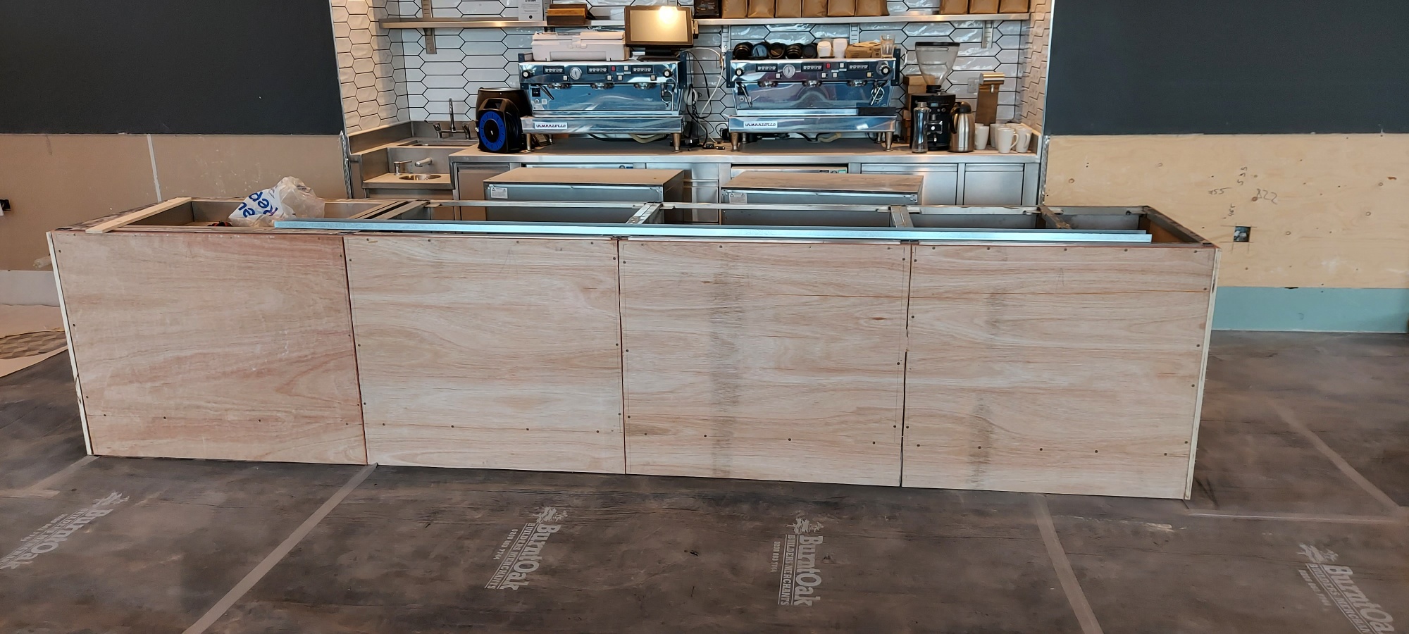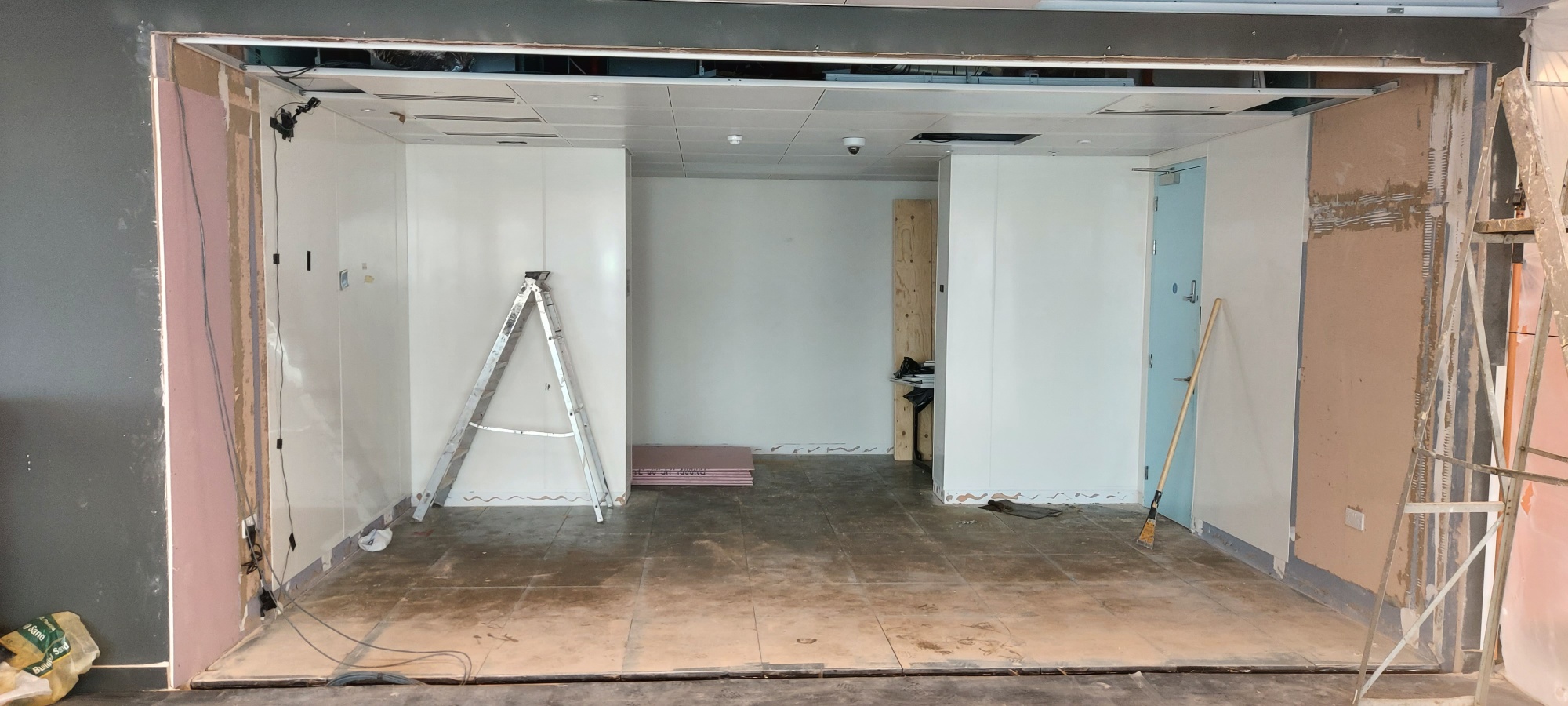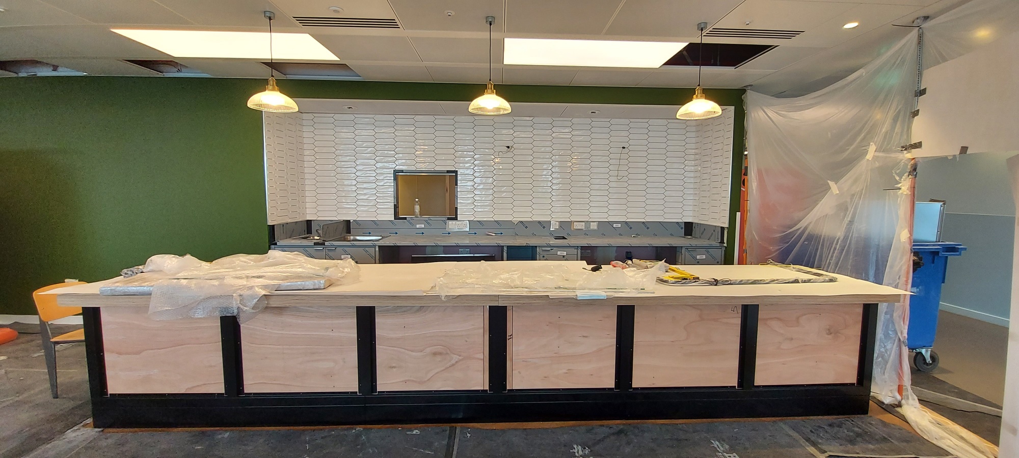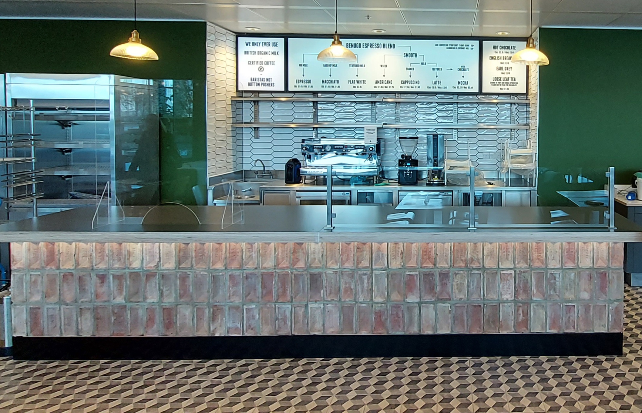 1st floor – Demolition of walls and strip out of wall M&E services, finishes and large salad bars. Installation of new grab and go fridges, hot plates and mobile salad bars. New LED lighting and power, touch screen ordering tablets and data, waste and water connections, installation of a new bespoke cooking pods, installation of new ovens, hot plates, new luxury timber cladding and vinyl flooring. Decoration to new and existing walls, decorative tiling.
